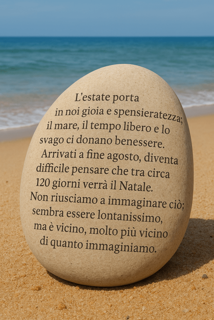 “Nei giorni d’estate, quando il sole ci scalda l’anima e il mare ci regala leggerezza, viviamo un tempo sospeso fatto di gioia e libertà. In quei momenti dimentichiamo tutto il resto, come se il mondo fosse solo luce e spensieratezza. Ma mentre ci perdiamo in questa dolce illusione, il calendario silenziosamente corre: e ciò che ci sembra lontano, forse temuto o forse atteso con speranza, è in realtà molto più vicino di quanto possiamo immaginare.”